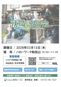 就職相談会 ●日 時:令和8年3月12日(木) ●ハローワーク和田山:10時00分~11時30分 ●募集職種等の詳細は下記チラシをご確認ください。 昭和リーブス 就職面接会 3月12日(木)